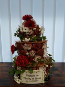 La pièce montée est réalisée à partir de choux à la crème et nougatine. Il est possible d’y associer différents thèmes et décors : fleurs, fruits, dragées, …